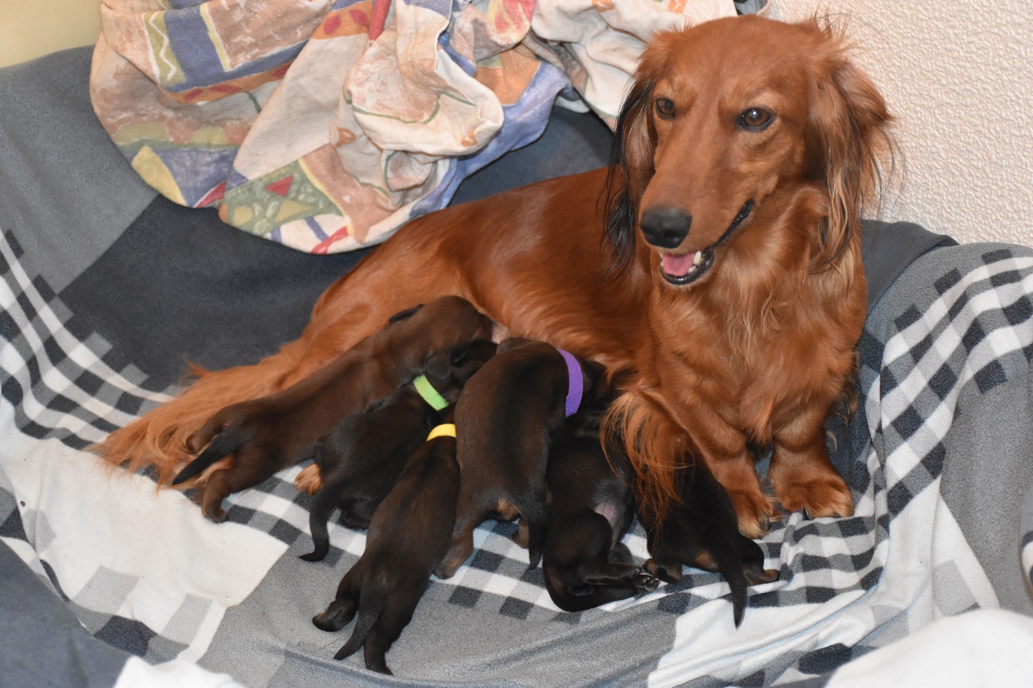 Seit 1984 züchte ich diese liebenswerten Hunde und habe seitdem über 100 Welpen groß gezogen. Immer wieder schön und immer wieder aufregend. Zu sehen, wie die kleinen wachsen und gedeihen, wie die Mütter sich darum kümmern und zu erleben, wie aus den kleinen Würmchen gestandene Dackelchen werden, ist der Grund, warum ich dieses Hobby nicht missen möchte. Einziger Wermutstropfen ist die Pflicht, sie nach einigen Wochen dann abgeben zu müssen - Tränen sind deshalb schon genug geflossen. Aber die Freude darüber zu sehen, wie die glücklichen neuen Besitzer mit ihren Hundchen das Haus verlassen, entschädigt dann für alles. Viele Freundschaften sind daraus entstanden, denn ich lege Wert darauf, mit allen in Kontakt zu bleiben, um den Werdegang meiner Welpen verfolgen zu können.